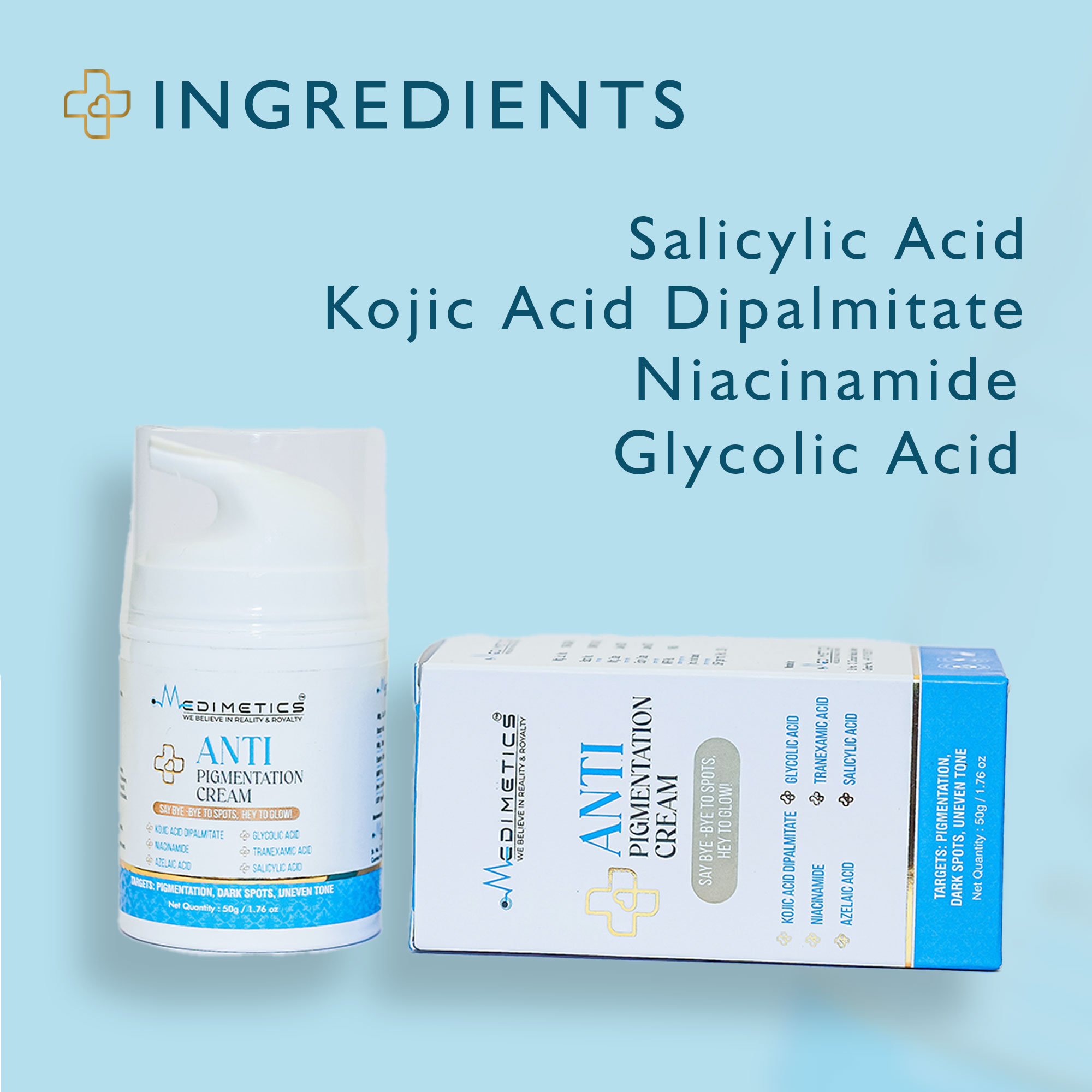 Unveil your skin’s brightest potential with Medimetics Anti-Pigmentation Cream.