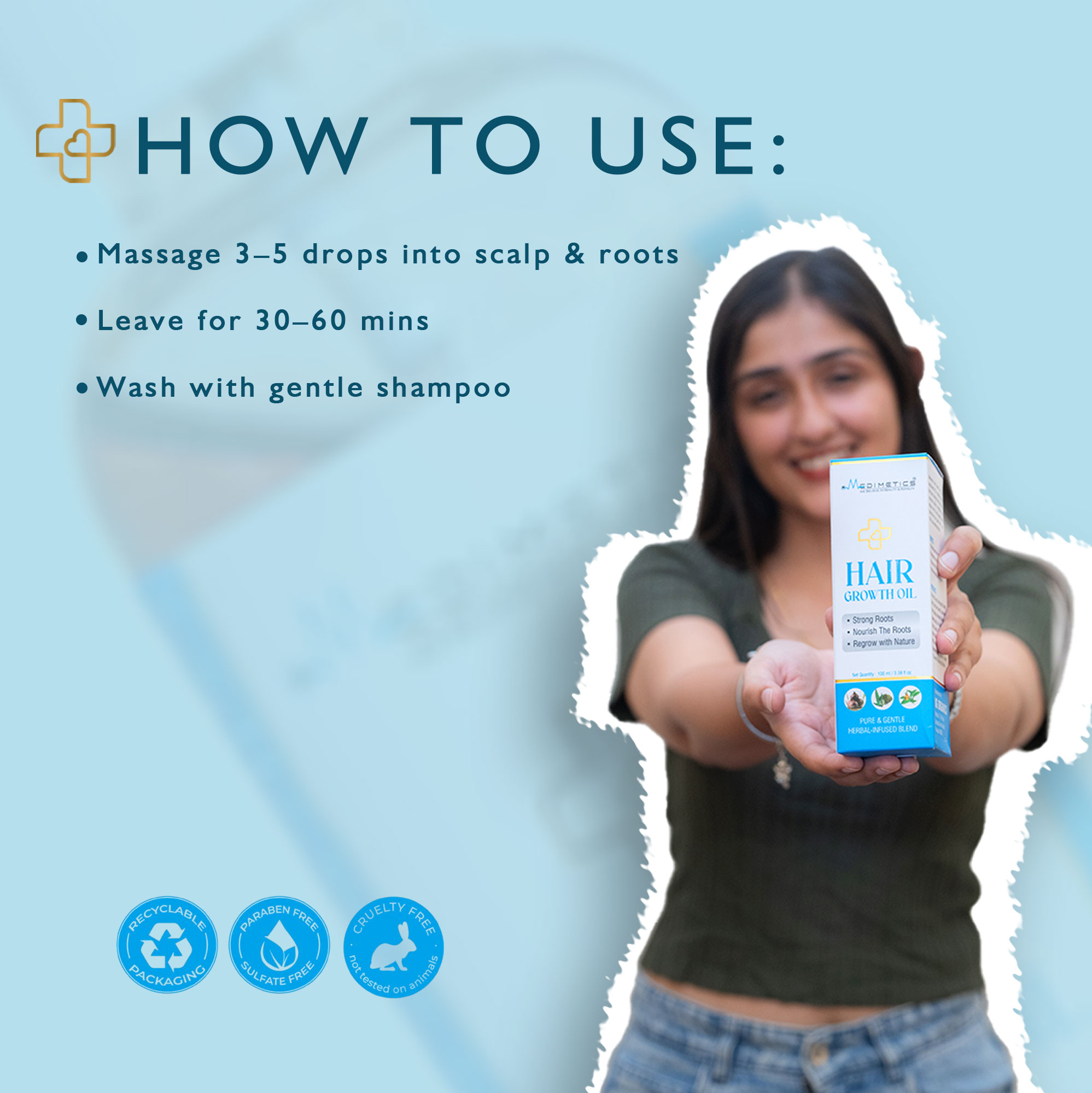 Bring back your confidence and shine with every drop of Medimetics Hair Growth Oil. 💆♀️✨