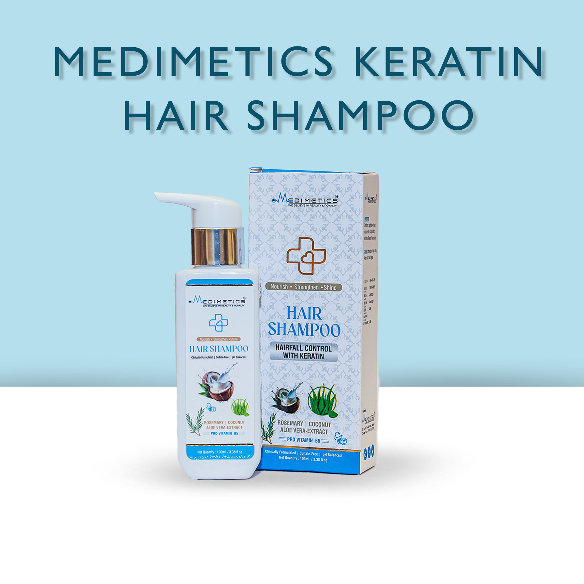💆♀️ Give your hair the love it deserves with Medimetics Keratin Hair Shampoo—where science meets shine.