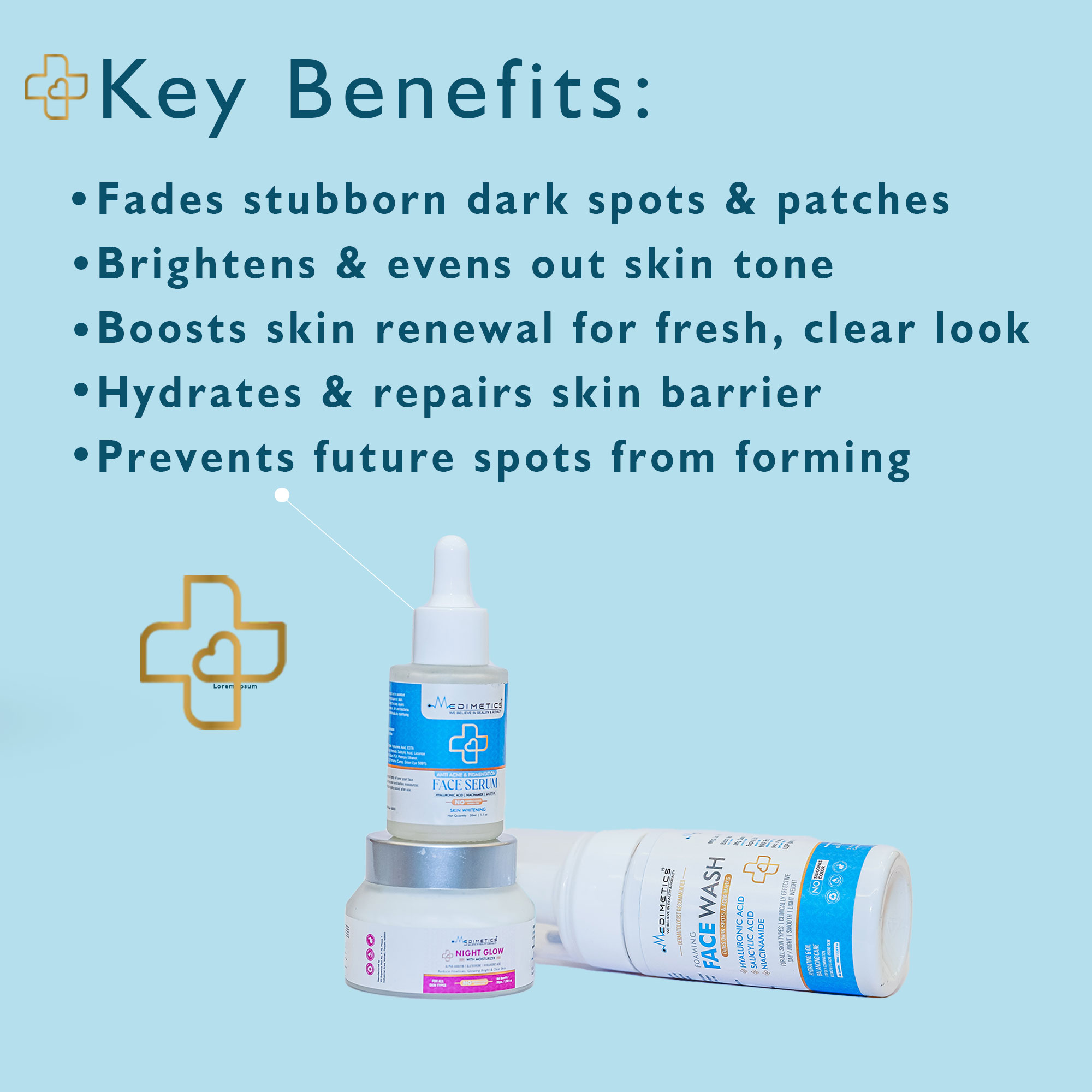 Struggling with pigmentation, dark spots, and uneven skin tone? The Medimetics Anti Dark spots solution is your all-in-one solution for visibly brighter and clearer skin. This combo includes: